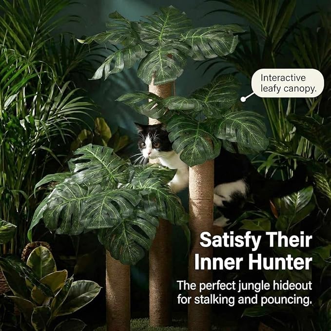 - 【Not only a cat scratching post but also a beautiful decoration】Transform Your Home into a Feline Jungle with Our Forest Cat Scratching Post!Elevate your home decor with this gorgeous 15.75"*15.75"*31.5" High cat scratching post that doubles as a beautiful decoration. With 3 sisal-covered scratching poles, 15 lush leaves, and a carpeted base resembling a tropical forest, your kitty will feel right at home in this jungle oasis.