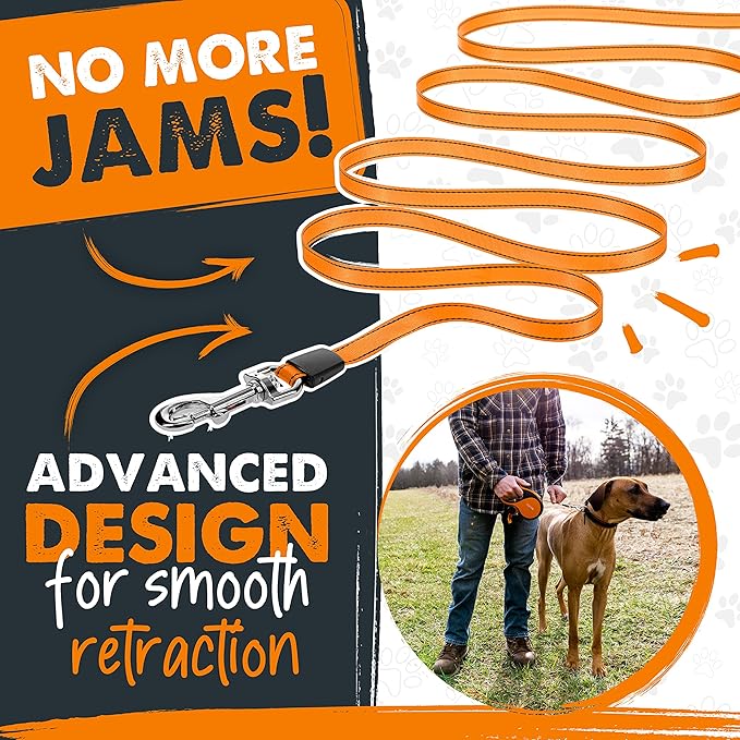 - Built Mighty Strong: Features a premium reflective nylon tape leash and a durable stainless steel coil to help prevent jams. A great heavy duty retractable dog leash for large dogs, medium breeds, and small pets!