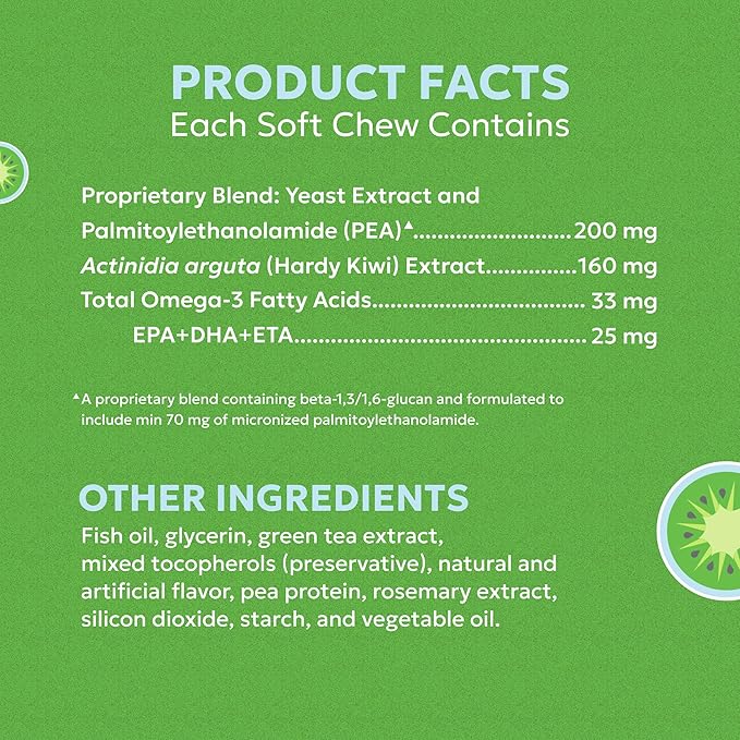 - Active Ingredients : Actinidia arguta (Hardy Kiwi) Extract 565 mg, Proprietary Blend: Yeast and Wheat Extracts* 455 mg, Total Omega-3 Fatty Acids 60 mg, Eicosapentaenoic Acid (EPA) 25 mg, Docosahexaenoic Acid (DHA) 15 mg, Eicosatetraenoic Acid (ETA) 1,000 mcg, Gamma-linolenic Acid (GLA) 60 mg. *A proprietary blend containing phytoceramides and beta (1,3)/(1,6) glucan MacroGard® Actinidia arguta (Hardy Kiwi) Extract 565 mg, Proprietary Blend: Yeast and Wheat Extracts* 455 mg, Total Omega-3 Fatty Acids 60 mg, Eicosape… See more