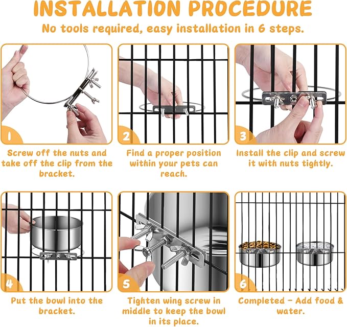- 【Anti-Spill】Comes with a wing screw in the middle to help the bowl locked securely in its place, you don’t need to worry the bowl will tip over resulting in your pets being wet or messy in cage.