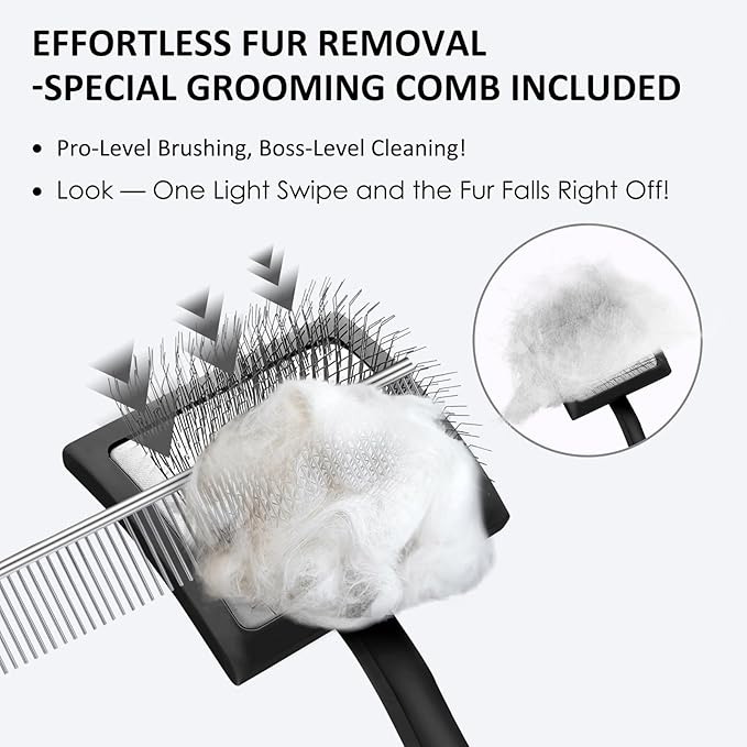 - Bonus Pet Comb for Dual Functionality: Use the included pet comb to detangle fur and clean trapped hair from the slicker brush. Great for post-grooming cleanup and keeping your tools ready for use.