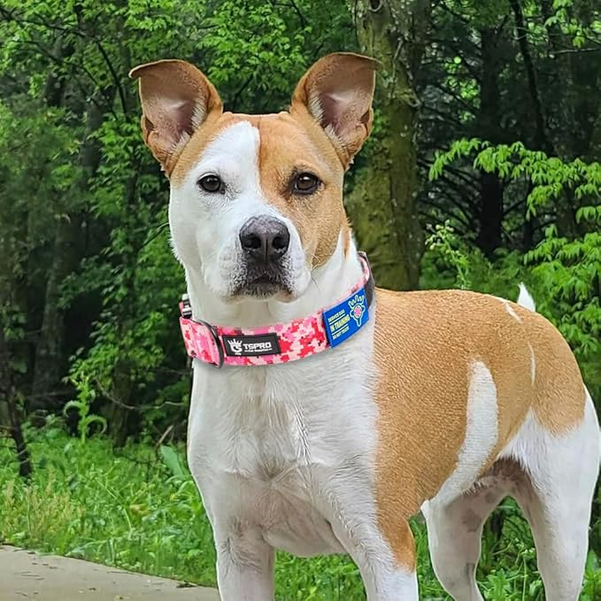 TSPRO Premium Dog Collars Tactical Dog Collar with Patch and Heavy Duty Quick-Release Metal Buckle Durable Thick and Adjustable for Medium to Large Dogs (Camo Pink M)
