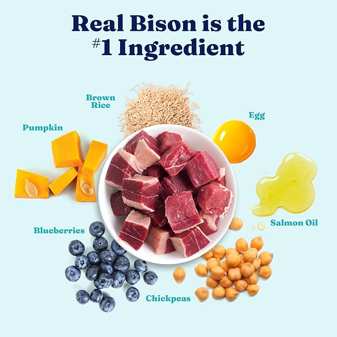 - Bison Protein for Growing Puppies - This large breed puppy food has real pasture-raised USA bison as the first ingredient. Supports muscle growth & energy with high protein & healthy fats—ideal for golden retrievers, German shepherds & big breed pups