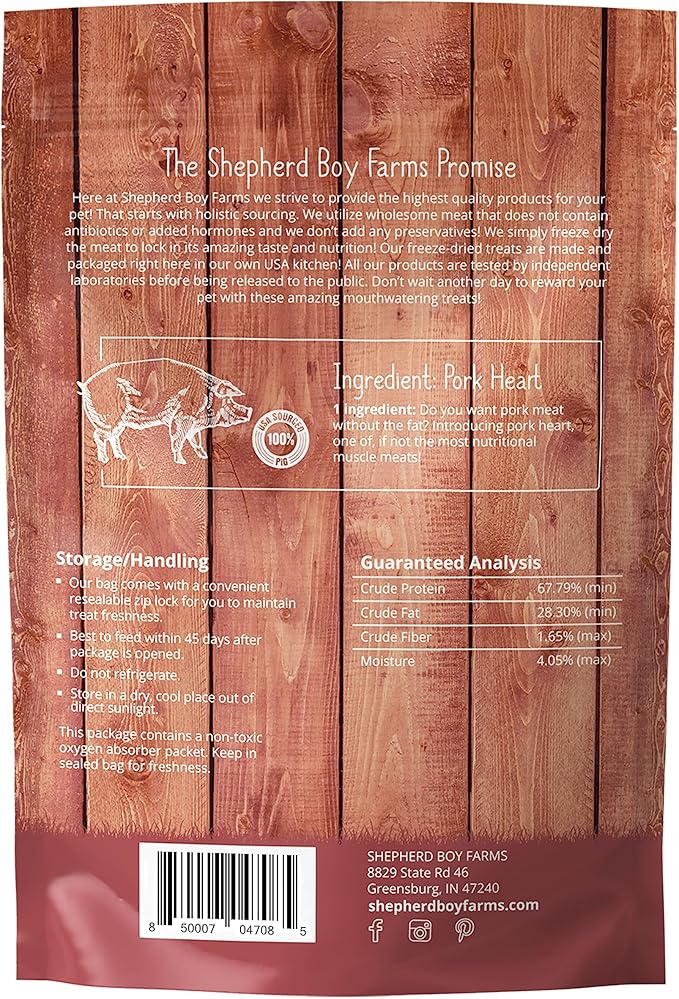 Shepherd Boy Farms Freeze Dried Dog and Cat Treats, Pork Heart, All Natural Single Ingredient Freeze-Dried Treat & Snacks, Made in USA, High Protein, Essential Nutrition of Raw Dog Food, 8oz
