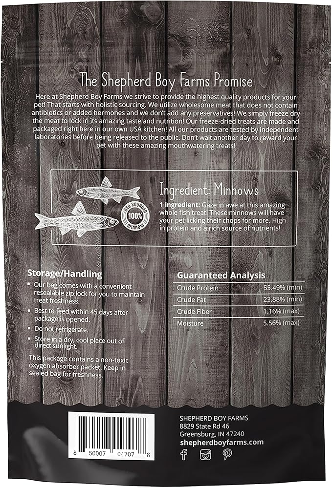 Shepherd Boy Farms Freeze Dried Dog and Cat Treats, Minnows, All Natural Single Ingredient Freeze-Dried Dog Treat & Snacks, Made in USA, High in Protein, Essential Nutrition of Raw Food, 5oz