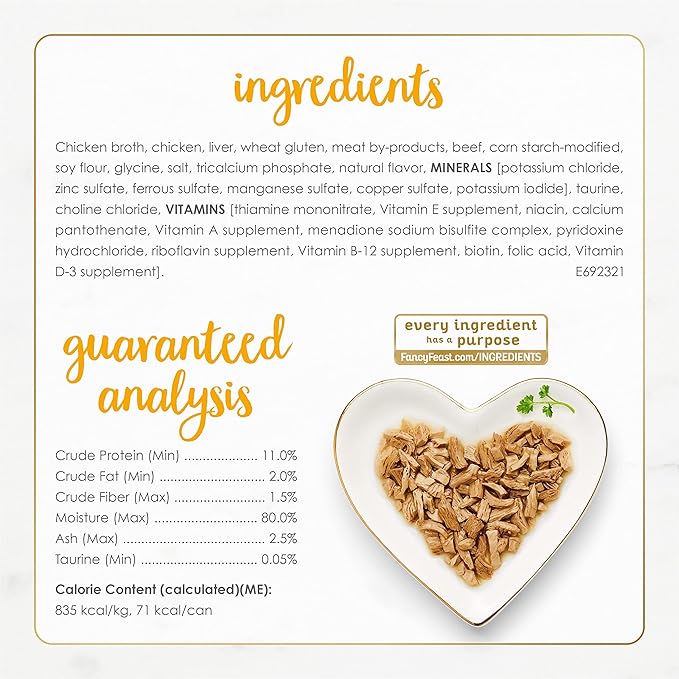 - Fancy Feast wet cat food made without artificial colors or preservatives