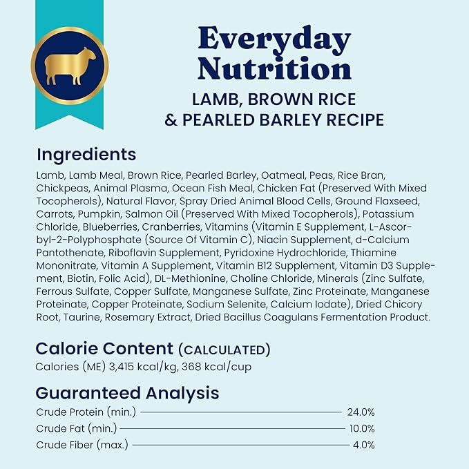 - High Protein Real Meat #1 Ingredient – With pasture-raised lamb as the first ingredient, this high protein dog food dry kibble has amino acids to help support lean muscle in active adult & senior dogs—plus Nutrientboost to support nutrient absorption