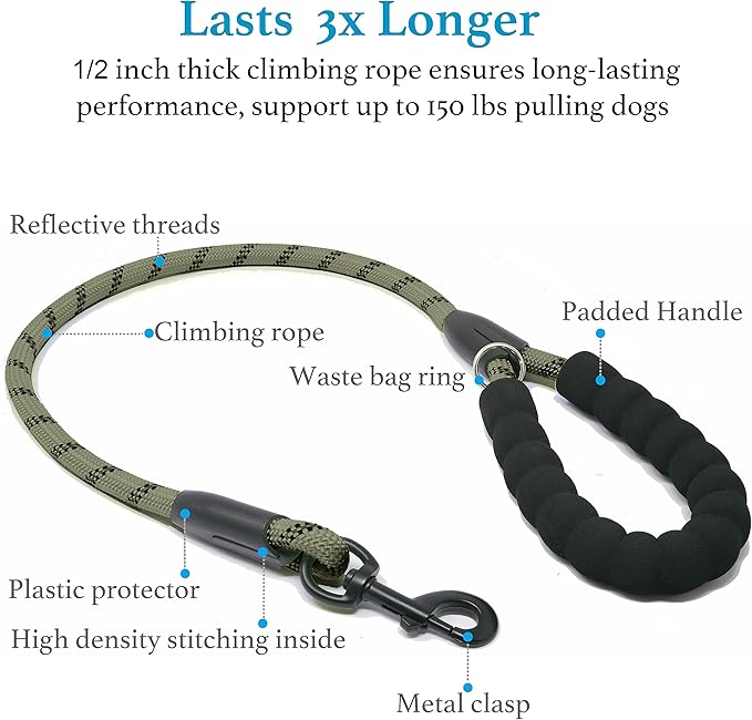 - Heavy Duty Design: Climbing rope and tightly woven nylon bungee extension make the iYoShop dog leash more durable but lightweight, heavy duty and easy to clean