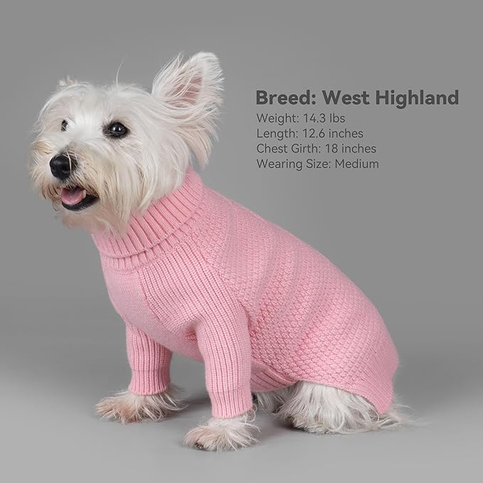 cyeollo Small Dog Sweater with Long Sleeves Warm Turtleneck Knitwear Dog Clothes Puppy Sweaters for Small Dogs,Pink, S