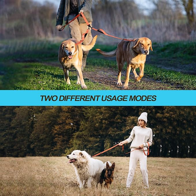 - Durable and Adjustable: Weather-proof nylon and durable hardware make the double dog coupler more durable and easy to clean. The short dog leashes can be extended from 29 to 38 inches, which gives your dogs enough room to run in front of you or beside you