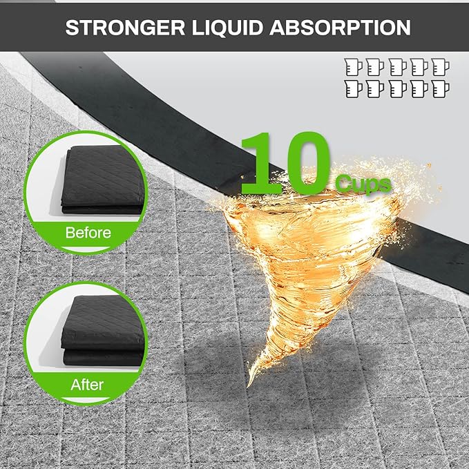- Quick Dry: Made with high-grade super absorbent polymer core(SAP), these training pads instantly absorb fast and turn urine into gel, keeping the surface dry. The quick-drying surface keeps your pet feeling comfortable and warm all day. Dry paws do not leave a huge mess on floors or carpets, no more wet footprints on the ground or wall.