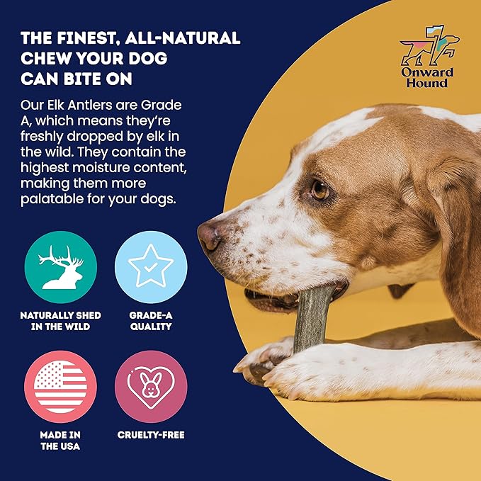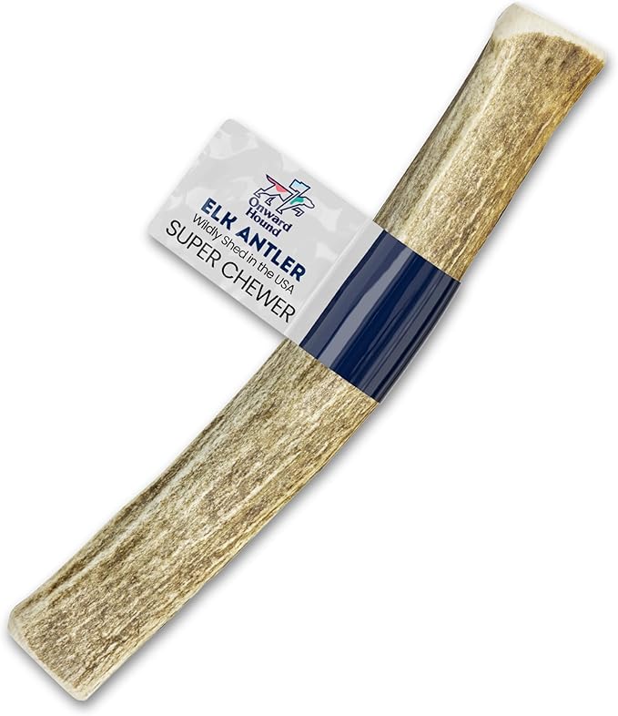 Onward Hound Elk Antlers for Dogs, 8"+ XXL 1-Pack, Grade A Long Lasting Chew for Aggressive Chewers, Premium USA Naturally Shed Antler - Healthy, No Odor, Durable Dog Chew for 90lb+ Breeds