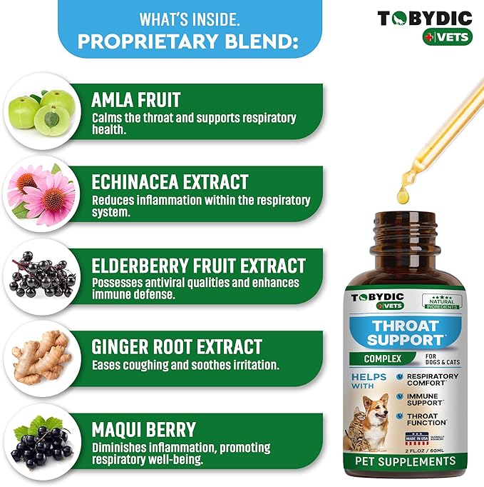 - ✅HIGHLY EFFECTIVE FORMULA: Relieving Dry, Wet, Barky Cough and Wheezing - Cough and Throat Soother. We understand that cough is just a symptom of pet allergy, bronchitis, or tight collar trauma. Gently relaxes the trachea and calms the respiratory tract.