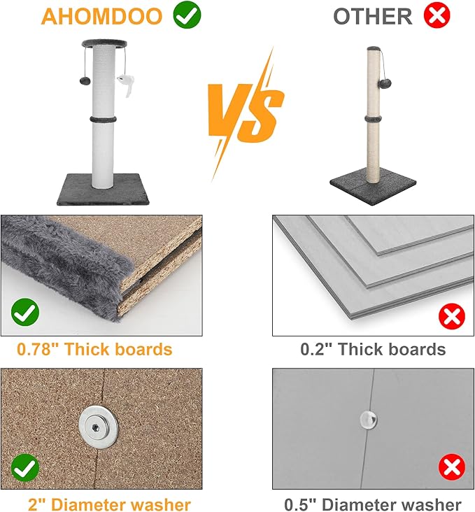 - Extra-Tall Design: Large scratching post often feature an extra-tall design, providing cats with an extended vertical surface to stretch and fully engage their muscles. 34inch height allows cats to indulge in their natural climbing instincts and provides them with a secure and satisfying scratching experience.