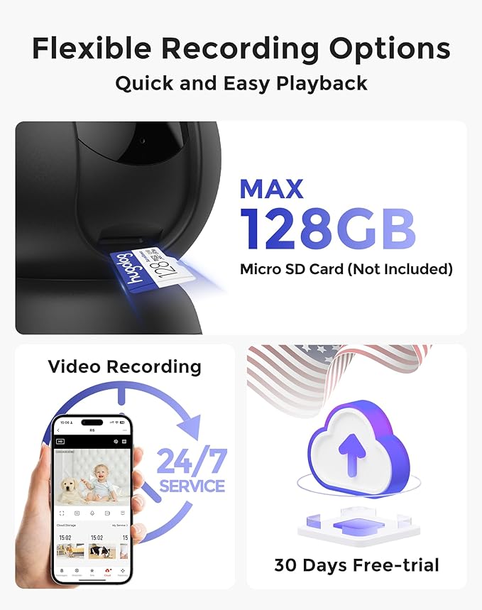 - US Cloud Storage & SD Card Storage: The indoor security camera supports encrypted cloud storage in the US and a built-in microSD slot up to 128GB; ensuring your high-quality 2K day and night color footage is safely stored locally or in the cloud