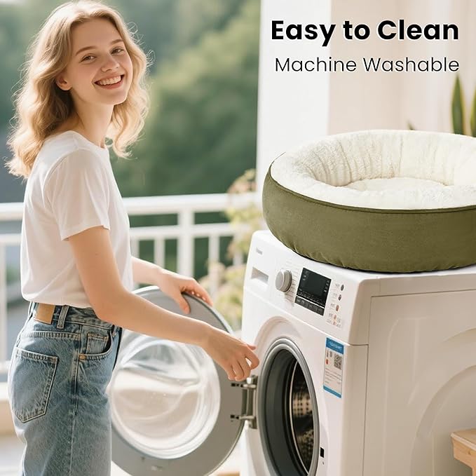 Love's cabin Round Donut Cat and Dog Cushion Bed, 30in Pet Bed for Medium or Large Dogs, Anti-Slip & Water-Resistant Bottom, Soft Durable Fabric Pet beds, Washable Calming Cat & Dog Bed Olive Green