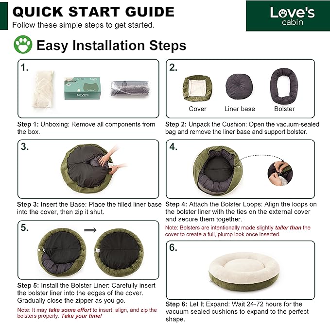 - Design Features: Love's cabin dog beds feature nest-like walls, round pet bed offers a safe, warm cozy place for large dog to snooze. In order to better maintain the shape of the donut nest,our interior filling is 25% more than most competition.