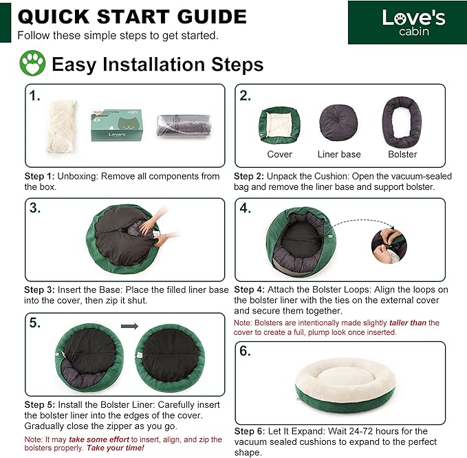 - Design Features: Love's cabin dog beds feature nest-like walls, round pet bed offers a safe, warm cozy place for large dog to snooze. In order to better maintain the shape of the donut nest,our interior filling is 25% more than most competition.