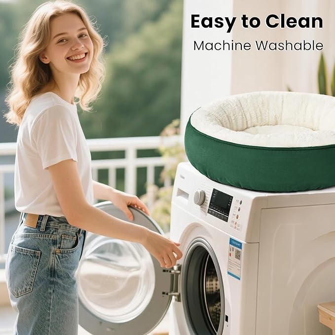 Love's cabin Round Donut Cat and Dog Cushion Bed, 30in Pet Bed for Medium or Large Dogs, Anti-Slip & Water-Resistant Bottom, Soft Durable Fabric Pet beds, Washable Calming Cat & Dog Bed Green