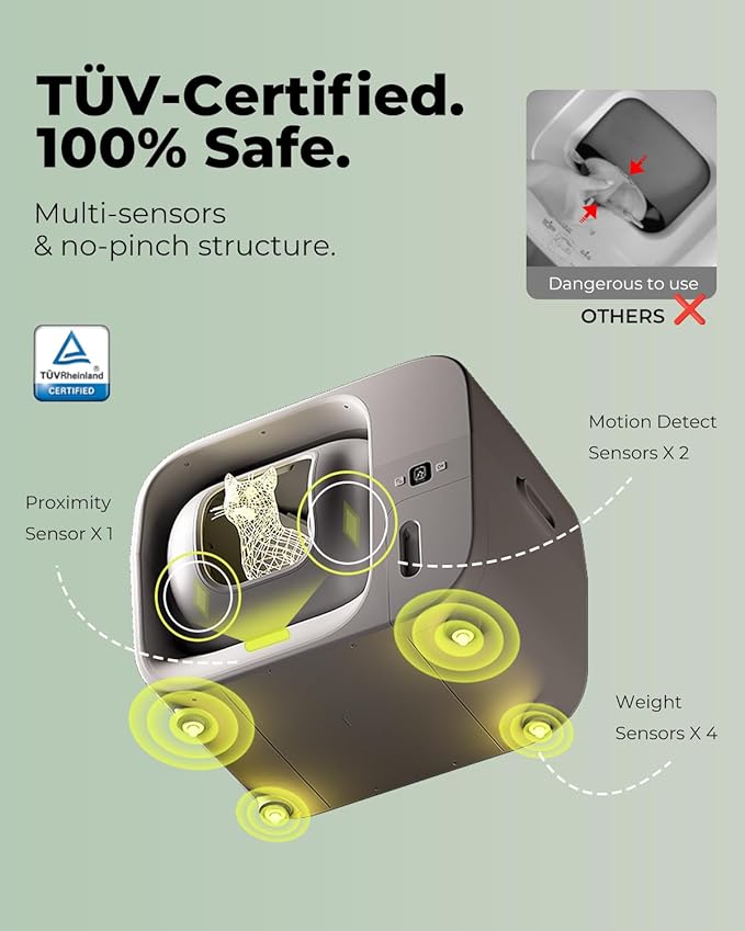 - MULTIPLE SAFETY SENSORS: Equipped with proximity, weight, and IR sensors to ensure 100% safety for your cat during use, with no pinch structure to prevent accidents