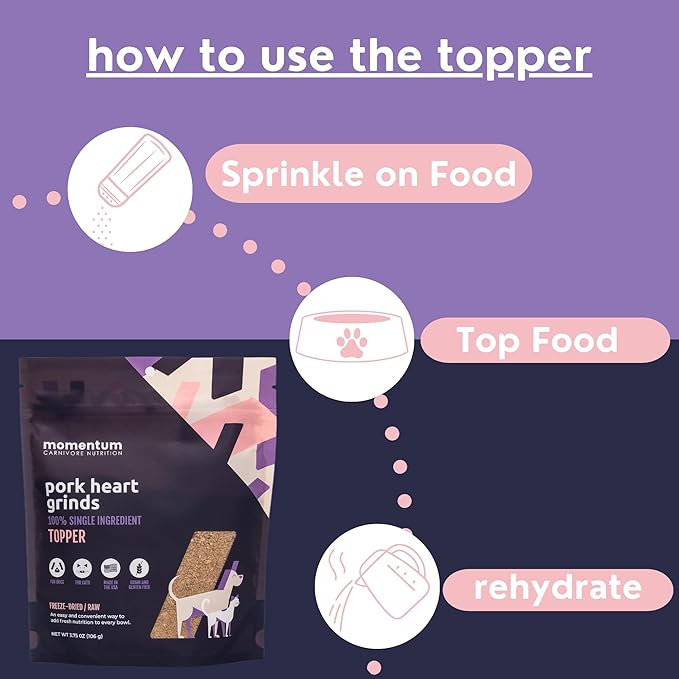 - VERSATILE MEAL ENHANCER: Suitable for all life stages, this freeze-dried pork heart pet food topper can be sprinkled over dry or wet food, making it a tasty and nutritious addition for picky eaters