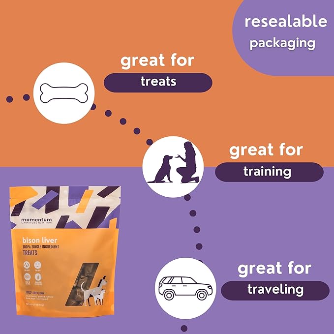 Momentum Carnivore Nutrition Freeze-Dried Bison Liver Dog Treats & Cat Treats – Single-Ingredient, High-Protein, Grain-Free, Lean Novel Protein – Made in USA – 4 oz Bag