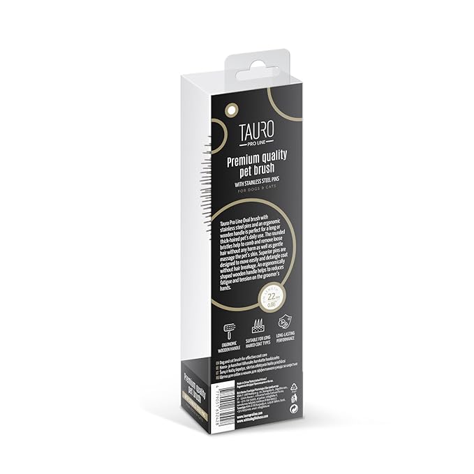 Tauro Pro Line Wooden Dog Brush for Long & Short Hair - Deshedding & Detangling Brown Massage Brush for Dog & Cat Grooming - Oval Flexible Cushion & Lightweight, Ideal for All Coat Types, S