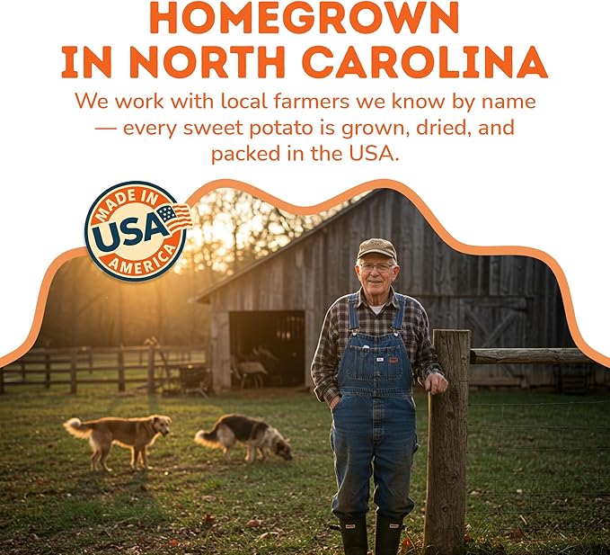 - PROUDLY MADE IN THE USA - Every sweet potato that goes into our dehydrated dog treats are grown on a family farm in North Carolina, ensuring the quality and freshness of every single one of our treats.