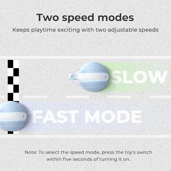 - 【2 Speeds Modes Adjustable】Wicked Snail cat toys for indoor cats offer two speed settings,the green light for slow mode and the blue light for fast mode. You can adjust the speed to suit different cats' preferences. Tip: Long press for three seconds to turn on!!! You can select the mode by pressing the power button of the pet toy within five seconds of turning it on.