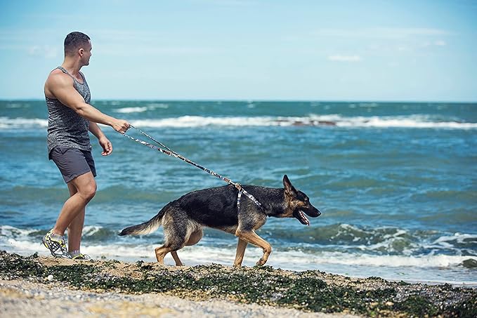 Dog Harness, No Pull Dogs Harness and Multi-Function Leash Set for Medium Dogs Easy Walk Everyday Adjustable Soft Dog Vest Harness Fashionable Dog Accessories Camouflage Blue-Slim Large