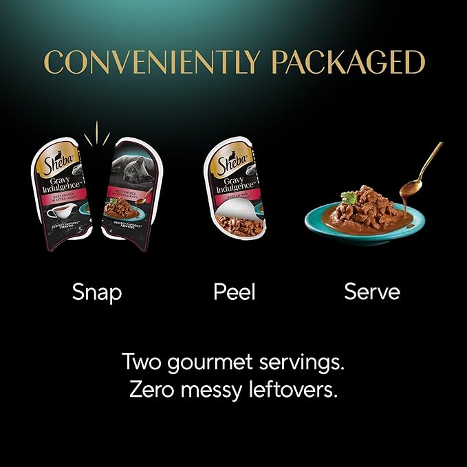 - Perfect For Picky Eaters: Made with real meat, Sheba Gravy Indulgence features cuts of beef covered in a thick, decadent gravy for a protein-rich meal with irresistible flavors in a variety of textures