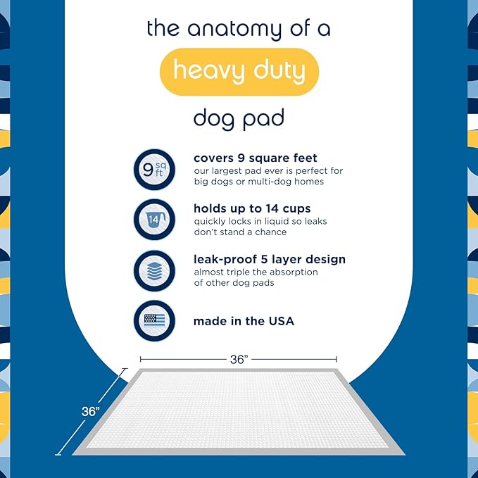 - 3XL POTTY PADS FOR DOGS: Introducing our 3XL Heavy Duty Pee Pads, providing a whopping 9 square feet of floor protection against your pup's toughest messes! Measuring 36" x 36", these potty pads are perfect for extra large dogs and multi-dog households. Featuring our innovative odor-control Clover Leaf Fragrance, released precisely when needed, alongside 5 layers of advanced absorption technology, making it the ultimate choice for pet parents seeking big top-notch performance.
