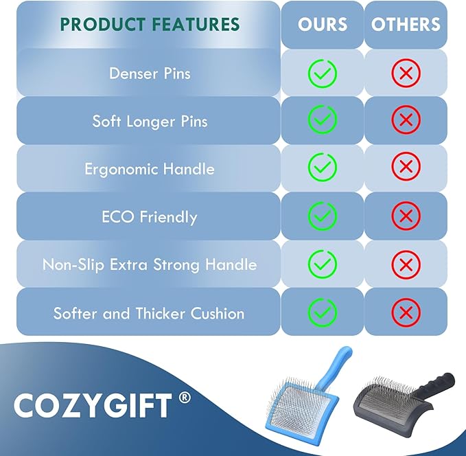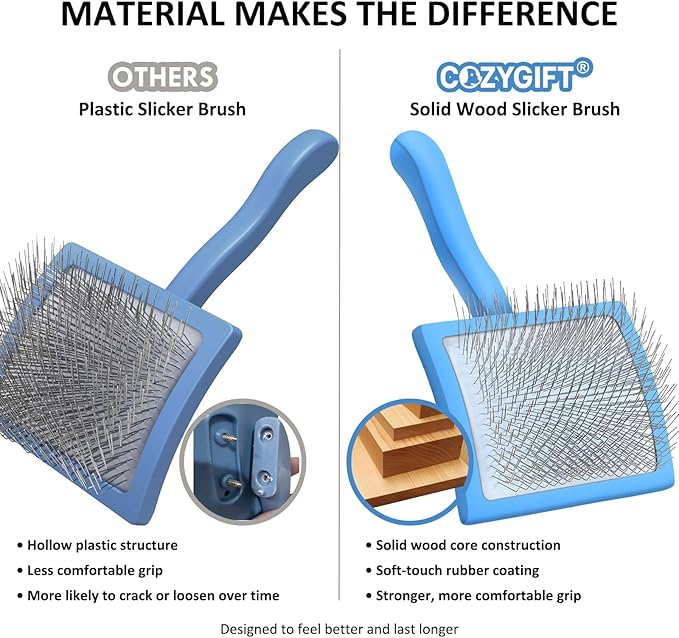 - ERGONOMIC WOODEN HANDLE – Large slicker brush and wooden grooming comb feature smooth, easy-grip wooden handles that feel secure while brushing big coats. Comfortable design helps reduce wrist and hand fatigue during long grooming sessions on heavy shedding pets.
