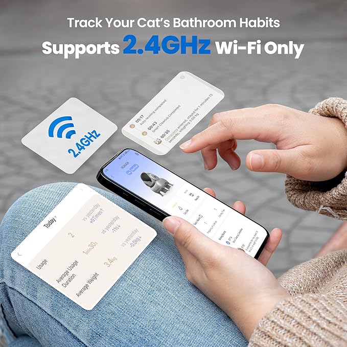 - 【Smart App Control】Use the Neakasa App (supports 2.4GHz Wi-Fi only) to track daily litter box activity and adjust modes remotely. Monitor your cat’s litter habits over time to better understand bathroom patterns and notice changes.