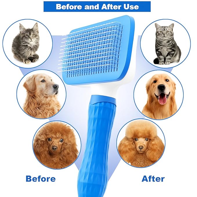 Generic Pet Grooming Brush, Blue - Self Cleaning Hair Brush for Dogs and Cats, Removes Loose Undercoat, Bristles with Massage Particles, Ergonomic Handle, For Long or Short Hair Breeds