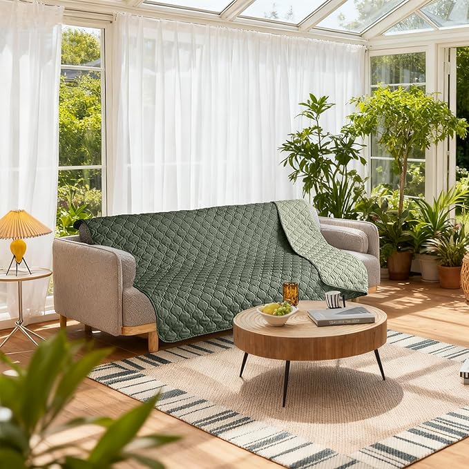 gogobunny 100% Double Sided Waterproof Dog Blanket Soft Pet Bed Cover Reversible Protect Furniture Couch Sofa Car for Puppy Large Dog Cat (Dark Olive/Light Olive, 82x102 Inch (Pack of 1))