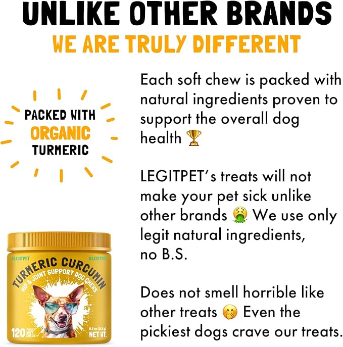 - HIGH CURCUMINOID CONTENT: Our treats contain 95% curcuminoids, the active compounds in turmeric known for their potent anti-inflammatory and antioxidant properties. This high concentration ensures maximum effectiveness in reducing inflammation, combating oxidative stress, and supporting overall health. Ideal for dogs with joint pain, or those needing a natural boost to their immune system.