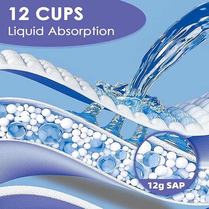 - 【Super Absorbent & Quick Dry】 The puppy pee pads has extra 12g of imported polymer which ensures rapid absorption, transforming liquid into gel. With a capacity of up to 12 cups or 1200ml, our doggie pads keep surfaces dry and clean, preventing messy paw prints.