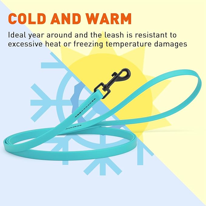 - More durable than leather dog leashes, the 4-foot and 6-foot Biothane dog leash boasts a flexible substrate core bonded with a waterproof coating, perfect for environs where strength and cleanliness are crucial. Not a chew proof material, not to be used for tie out!