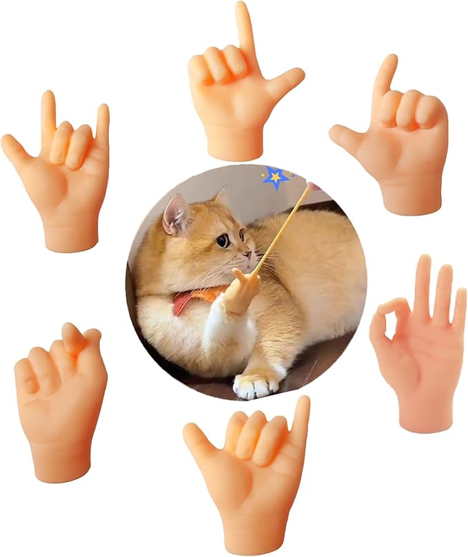 Tiny Hands,Cat Interactive Small Fingers,High Elasticity Hands for Cats,Mini Hands for Cats,Funny Toys. (High Elasticity-6PCS)