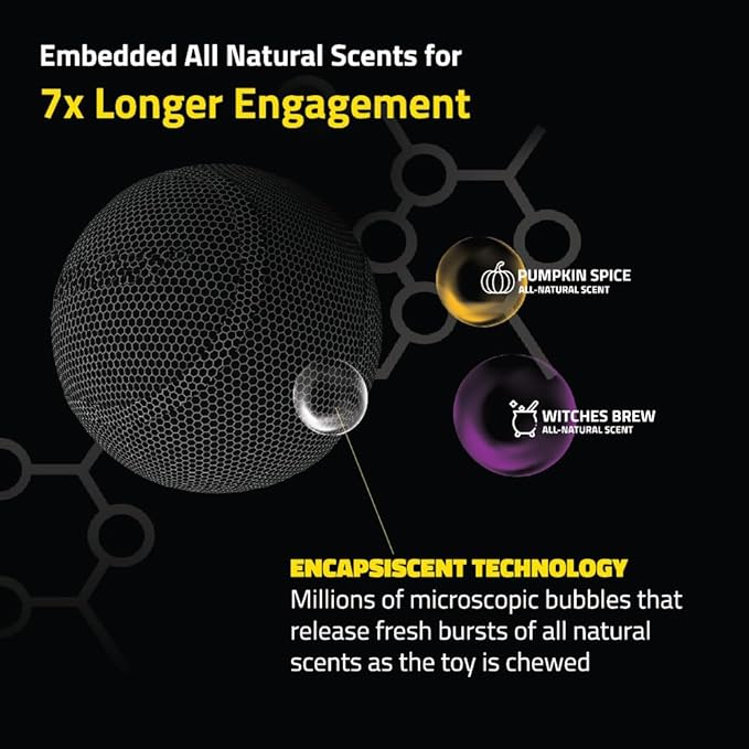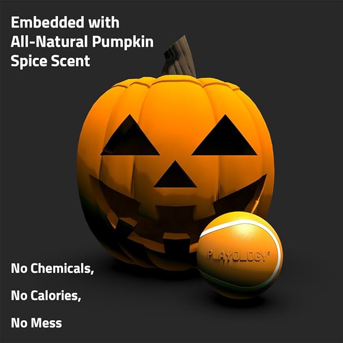 - MEET THE SWEATER WEATHER SQUEAKY CHEW BALL: Made with a fun squeak, playful bounce, and embedded with an all-natural Pumpkin Spice scent, this ball is scientifically designed to excite multiple senses and keep your dog busy and engaged in playtime up to 7x longer than unscented dog toys. Mix and match with other limited-time Sweater Weather scents and styles to keep your pup’s tail wagging all season long. Designed for large and jumbo breed dogs 50 lbs and up.