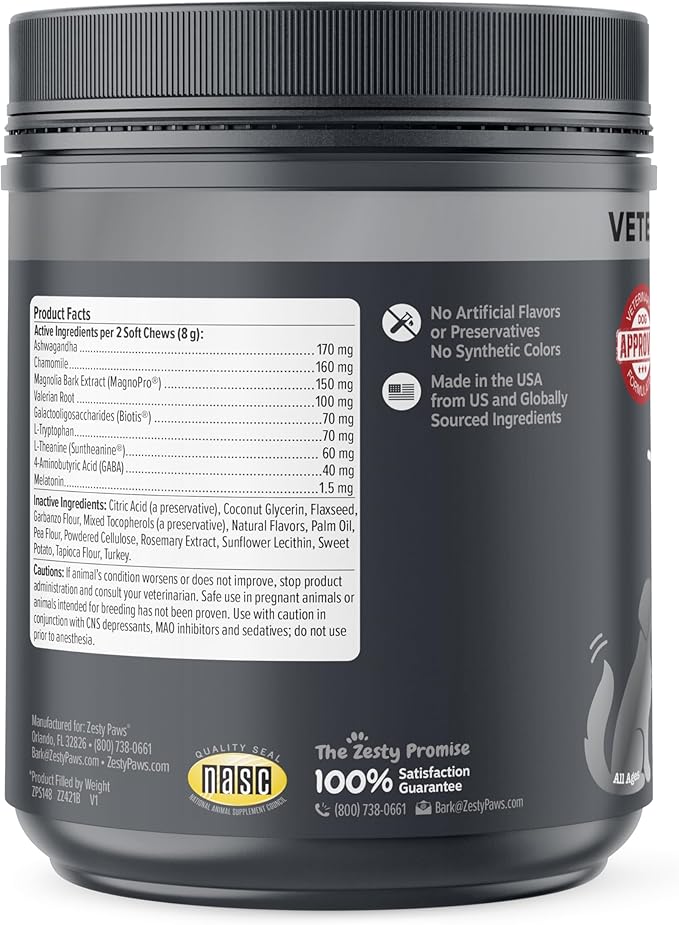 - Veterinarian Formulated Calming Treats for Dogs - Zesty Paws Vet Strength Calming Bites are vet-formulated dog calming soft chews with highly concentrated ingredients that can help with separation and nervousness