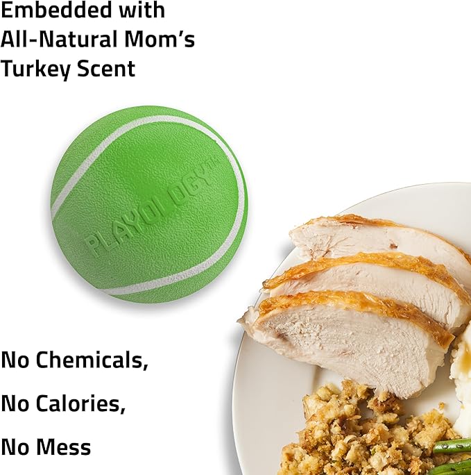 - MEET THE SQUEAKY CHEW BALL BY PLAYOLOGY: Featuring a fun squeaky sound and enticing all-natural Mom's Turkey scent, thanks to our Encapsiscent Technology, this is the toy your pup’s been waiting for. The ball is built to float, so it’s great for the backyard or park, and also for water play in a pool, pond, lake or beach. The Jumbo size is ideal for dogs 50 lb and up.