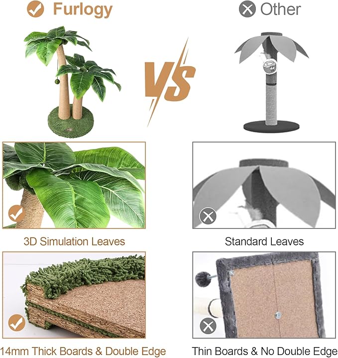 - [Stylish Design Meets Feline Fun] The Furlogy 35" Tall Cat Scratching Post isn’t just a scratching toy—it’s a cute cat scratching post that doubles as home decor. Its sleek, curved design and modern look add charm to any room