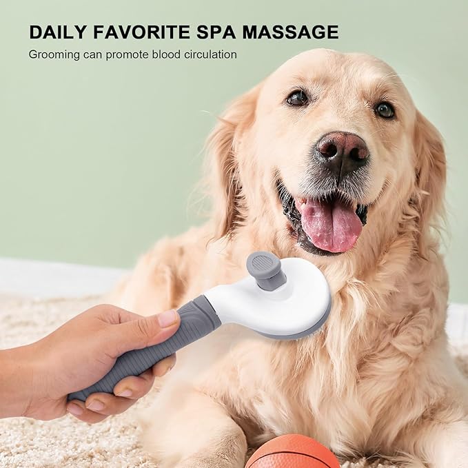 Self Cleaning Slicker Brush for Pet Grooming - Removes Loose Undercoat and Sheds, Suitable for Long and Short Hair Cats and Dogs, with Massaging Bristles (Grey)