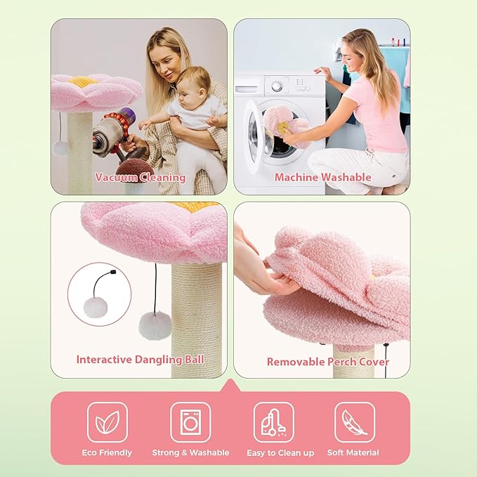- Adorable Flower and Mushroom Design: This PETEPELA small cat scratching post [Height=19.7"] combines an enchanting flower and mushroom design into one delightful scratching post.The cute flower cat scratching post features a soft flower-shaped top cat bed, which is both removable and washable. The mushroom cat scratching post adds an extra element of fun and texture, making it an irresistible playground for your cat