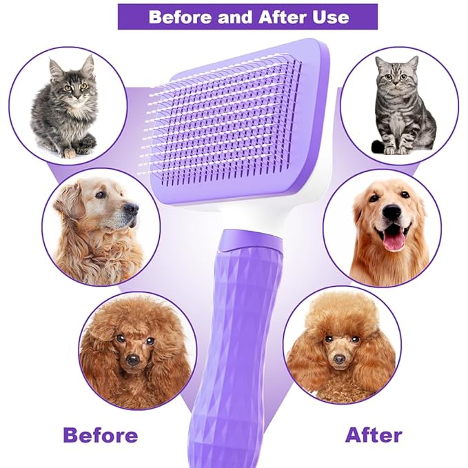 Pet Grooming Brush for Cats & Dogs, Self-Cleaning Undercoat Deshedding & Massage Tool, Purple