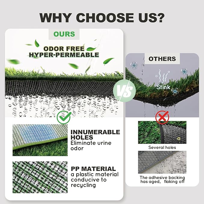 - Easy of Cleaning : Machine washable. Please soak the soft and realistic grass pad in soapy water for a while before rinsing, which could get rid of the pee and stink mostly.
