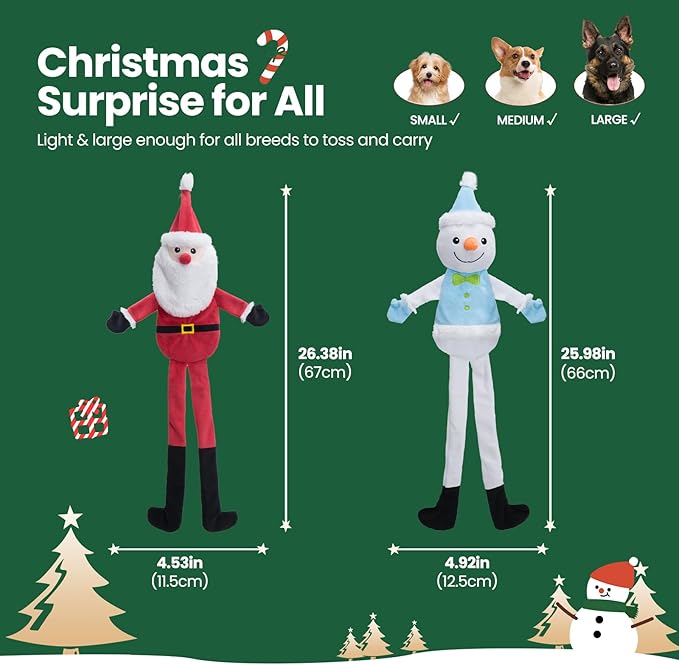 - Premium Quality: Those puppy teething toys are made of premium fabrics and exquiste embroidery, coupled with reinforced stitching. Size is 25.98 inch, great to use as tug of war dog toys. Lightweight enough for all breeds to toss and carry with. A must-have dog Christmas toys to keep your dogs happy