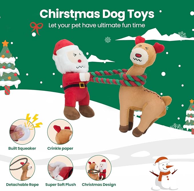 - DETACHABLE ROPE FOR FUNNY PLAY: The uniqueness of these christmas dog toys for aggressive chewers is its detachable rope design, providing ultimate joy for your pups. Split the Christmas dog toys for 2 are suitable for multi-dog household to enjoy christmas fun together. Combine them with sturdy rope is perfect for tug-of-war to strengthen the relationship between you and your dogs. Our interactive dog toys for medium dogs is great for tugging, biting & chewing to relieve your pet's depression, boredom and anxiety